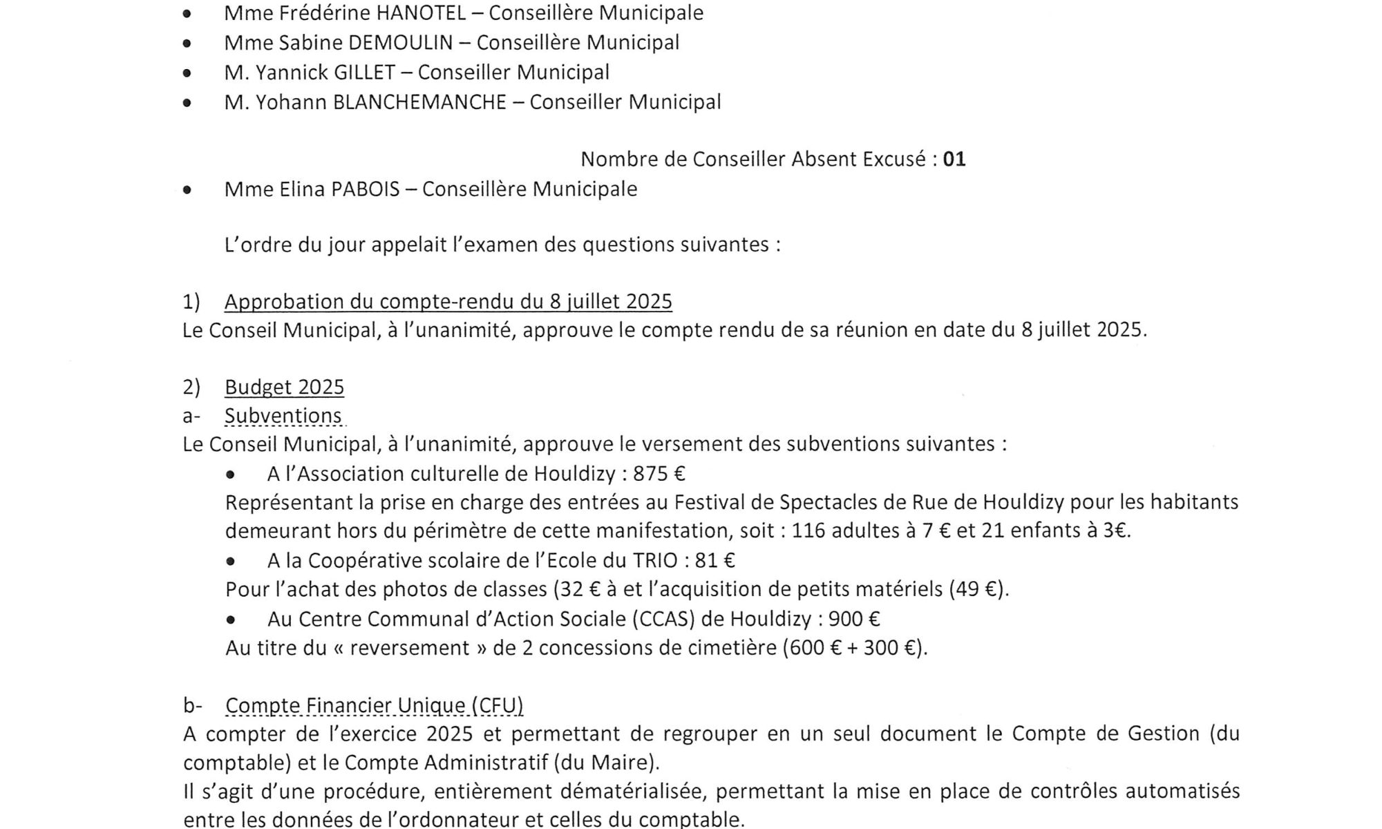 Compte rendu de la réunion du Conseil Municipal du 14/04/2025